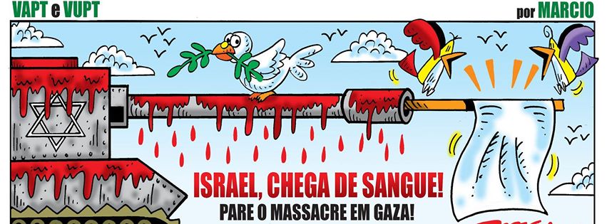 O cartunista Wagner Passos, que também é solidário com os palestinos disse no seu perfil de Facebook: “Dia após dia fico estarrecido com a forma que o mundo tem virado as costas para o genocídio na Palestina… A imprensa mostra um pouco do que acontece, porém de uma certa distância, querendo ser imparcial, em uma situação que é impossível ficar em cima do muro… e quem fica tem um lado: o do opressor. Me pergunto: o que fazer a uma certa distância, como ser solidário à este povo? Talvez seja hora de sermos também todos palestinos.”