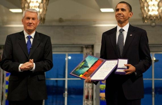 A nova presidenta do Comitê Nobel não negou que a demissão de Jagland tenha a ver com Obama, o qual depois da láurea converteu-se no mais furioso falcão-de-guerra neoconservador; que deixou para trás na corrida pelo primeiro lugar em matéria de sede de sangue, até o mais empedernido neoconservador; e cujas ações (ou falta de ação) não só elevaram a intensidade do conflito global aos picos mais altos em sete anos, como, além disso, enriqueceram desmesuradamente os acionistas do complexo industrial militar.