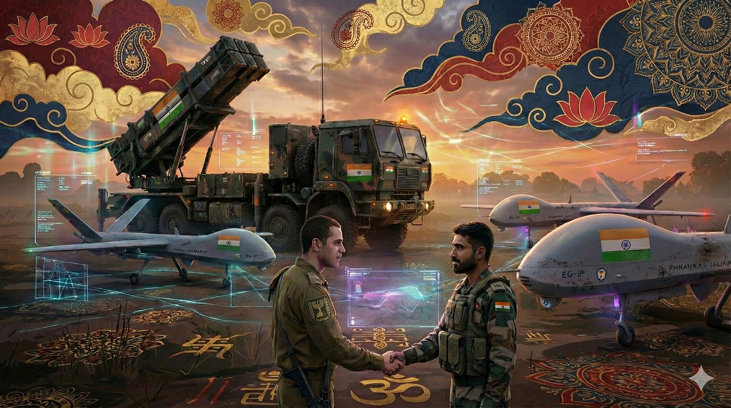 Índia e Israel, por sua vez, são parceiros estratégicos. 34% das aquisições no mercado de defesa israelense, entre 2020 e 2024, foram feitas pelo governo de Modi [6]. Além disso, Israel transferiu a tecnologia dos drones Hermes 450 e 900, da Elbit, aos indianos [8] e do míssil Barak-8 [7], dentre outros.