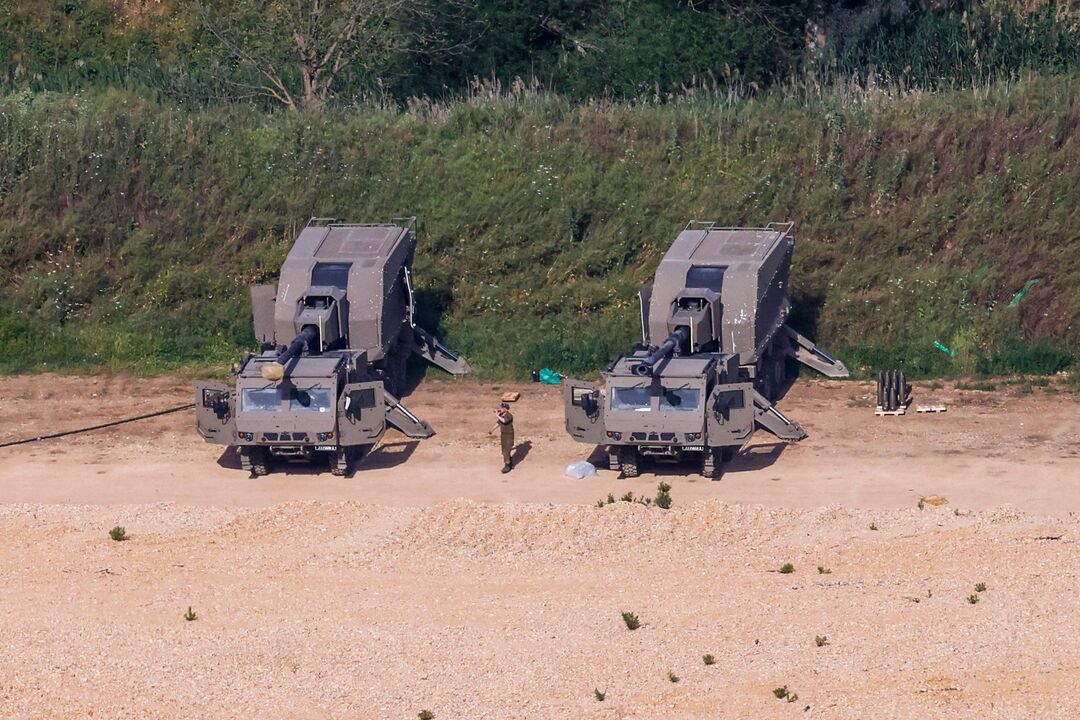 Veículos militares israelenses estão estacionados perto da fronteira com o Líbano.