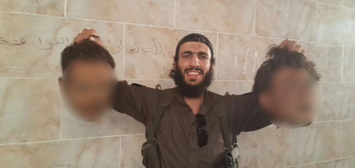 Jihadista marroquinho na Síria exibe cabeças humanas. Embora Ocidente tenha patrocinado o “jihadismo” moderno, utiliza estas imagens para estereotipar o mundo árabe e apresentá-lo como “selvagem” e “bárbaro”.